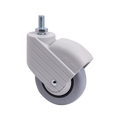 La serie de ruedas Alex HP-PGI son ruedas de poliamix y goma gris, indicadas para soportar cargas hasta 40 Kg. Se utilizan en expositores, muebles, taburetes, restauración, hospitales, útiles, portagoteros, mobiliario clínico sanitario, goteros y carros de limpieza. PGI: No rallan ni manchan el suelo. Aptas para todo tipo de superficies.