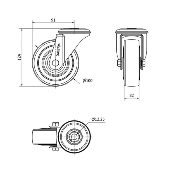 Rueda goma giratoria Alex diametro 100 mm. modelo 2-4139