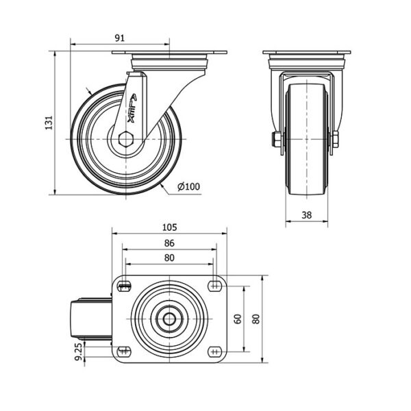 Rueda goma giratoria Alex diametro 100 mm. modelo 2-4431
