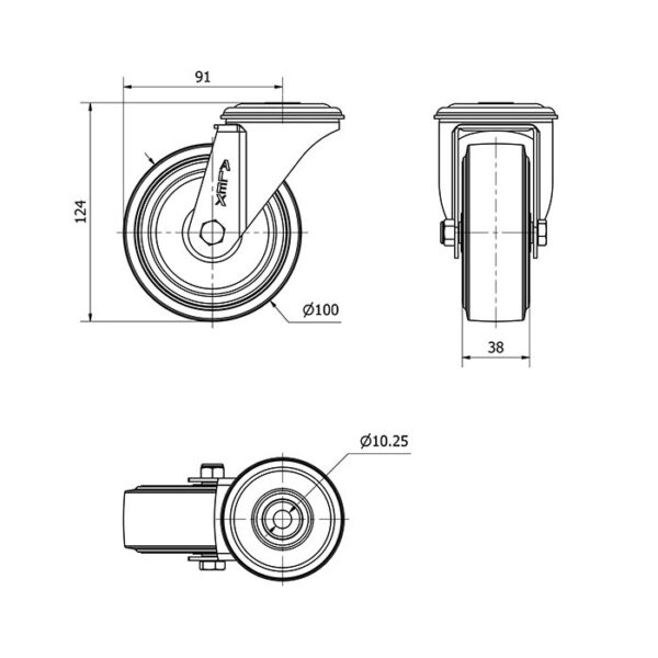 Rueda goma giratoria Alex diametro 100 mm. modelo 2-4439