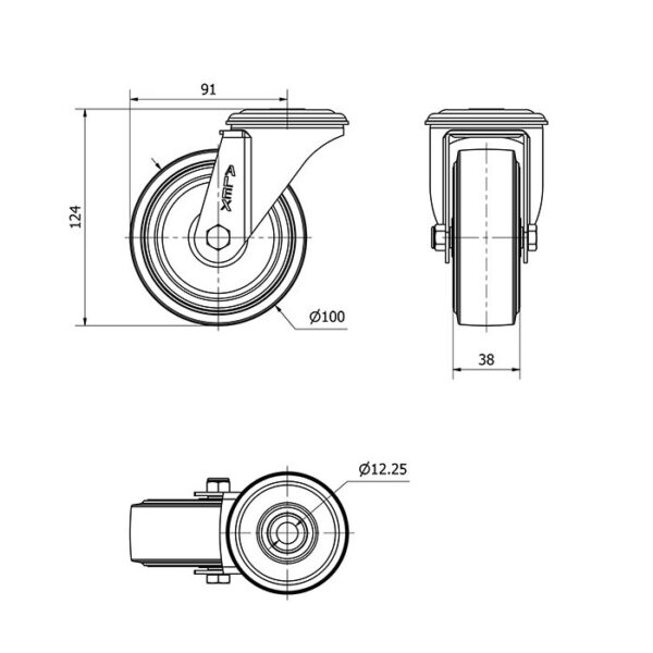 Rueda goma giratoria Alex diametro 100 mm. modelo 2-4443