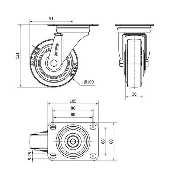 Rueda goma giratoria Alex diametro 100 mm. modelo 2-4445