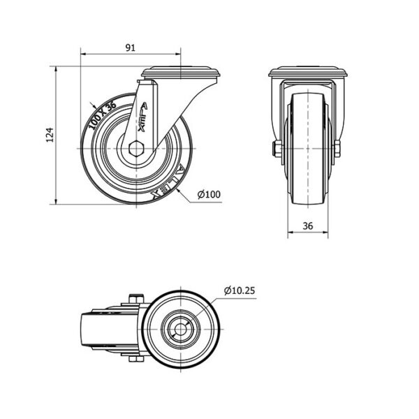 Rueda goma giratoria Alex diametro 100 mm. modelo 2-4448