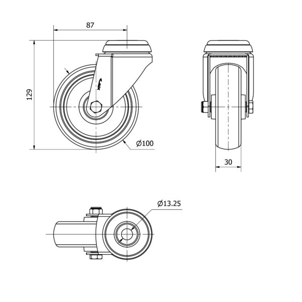 Rueda goma giratoria Alex diametro 100 mm. modelo 2-4613