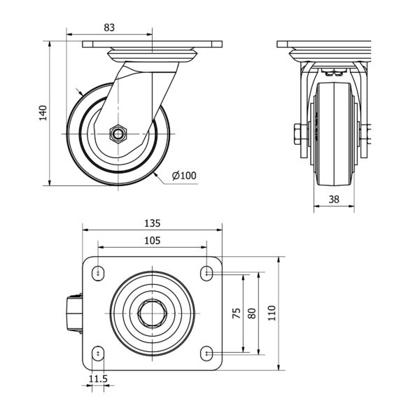 Rueda goma giratoria Alex diametro 100 mm. modelo 4-0784