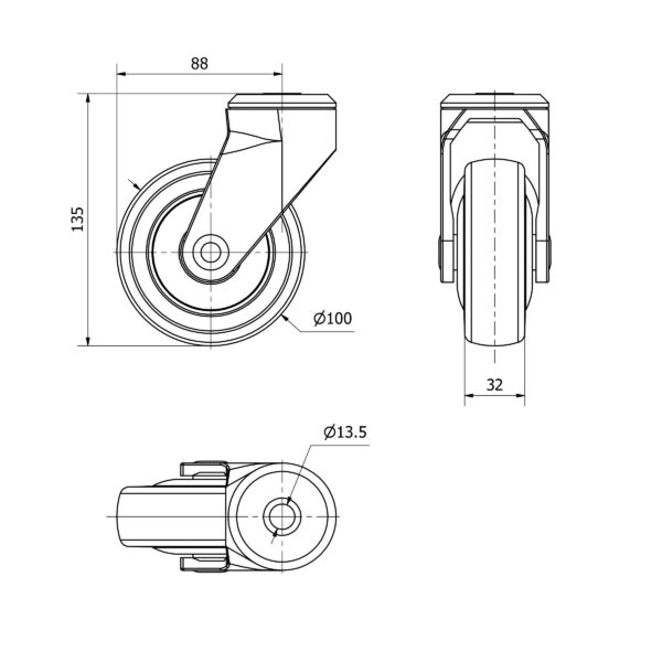 Rueda goma giratoria Alex diametro 100 mm. modelo 4-1602 EAN 8422202416021