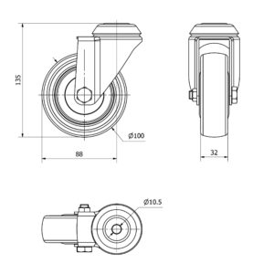 Rueda goma giratoria Alex diametro 100 mm. modelo TW0065