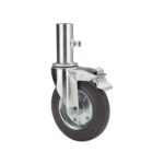 La serie de ruedas Alex Twin Lex serie 310 son ruedas de goma gris inyectada, indicadas para soportar cargas de hasta 80 Kg. Se utilizan en supermercados, expositores, muebles, cajas apilables, taburetes, vitrinas, percheros, carros de hostelería, útiles para hospitales, mobiliario clínico sanitario y goteros.. TWIN-LEX 310: No rallan el suelo, silenciosas y no dejan huella.