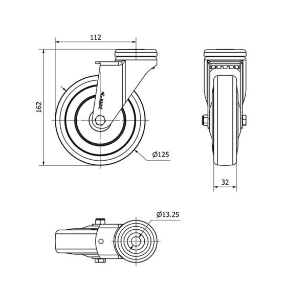 Rueda goma giratoria Alex diametro 125 mm. modelo 2-0267