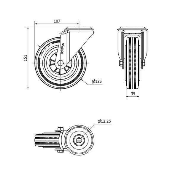 Rueda goma giratoria Alex diametro 125 mm. modelo 2-1343