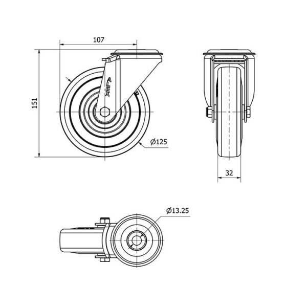 Rueda goma giratoria Alex diametro 125 mm. modelo 2-2407