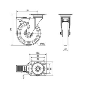 Rueda goma giratoria Alex diametro 125 mm. modelo 2-2666
