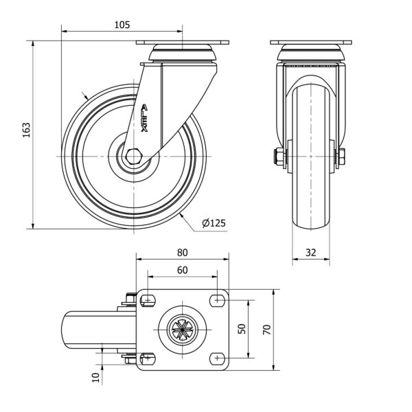 Rueda goma giratoria Alex diametro 125 mm. modelo 2-3702 EAN 8422202237022