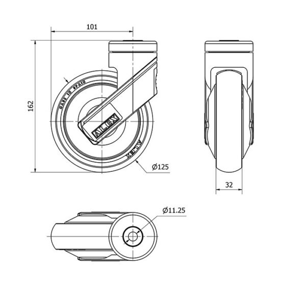 Rueda goma giratoria Alex diametro 125 mm. modelo 2-4637