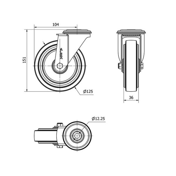 Rueda goma giratoria Alex diametro 125 mm. modelo 2-4866