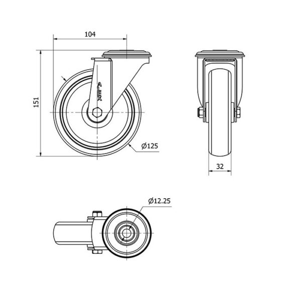 Rueda goma giratoria Alex diametro 125 mm. modelo 2-4941