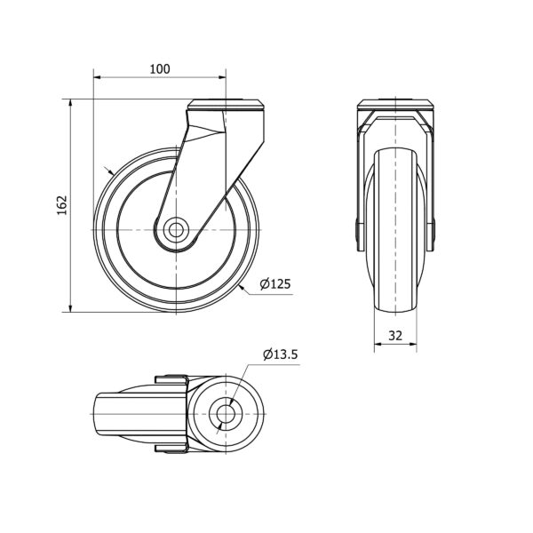Rueda goma giratoria Alex diametro 125 mm. modelo 4-1603
