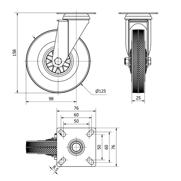 Rueda goma giratoria Alex diametro 125 mm. modelo TW0081