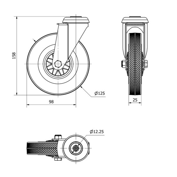 Rueda goma giratoria Alex diametro 125 mm. modelo TW0091