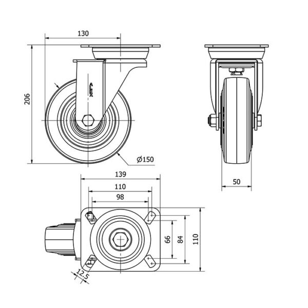 Rueda goma giratoria Alex diametro 150 mm. modelo 2-0535