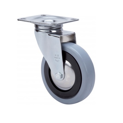 La serie de ruedas Alex A-PGA son ruedas con núcleo de poliamix y banda de goma gris, indicadas para soportar cargas hasta 100 Kg. Se utilizan en salas de operaciones, quirófanos, camas y restauración. PGA: No mancha el suelo y es suave y silenciosa.