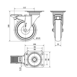 La serie de ruedas Alex A-PGAIB son ruedas con núcleo de poliamix y banda de goma gris termoplástica, indicadas para soportar cargas hasta 100 Kg.. Se utilizan en salas de operaciones, quirófanos, camas, usos hospitalarios y restauración. PGAIB: Silenciosa y absorbe las vibraciones. No dejan huella en los pavimentos. Fácil desplazamiento.