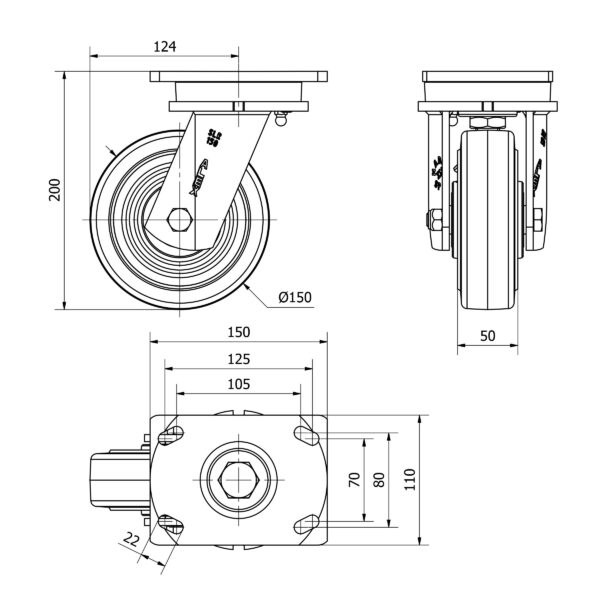 Rueda goma giratoria Alex diametro 150 mm. modelo 2-3641 EAN 8422202236414