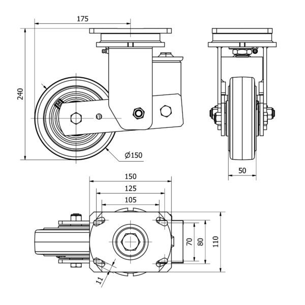 Rueda goma giratoria Alex diametro 150 mm. modelo 2-3930