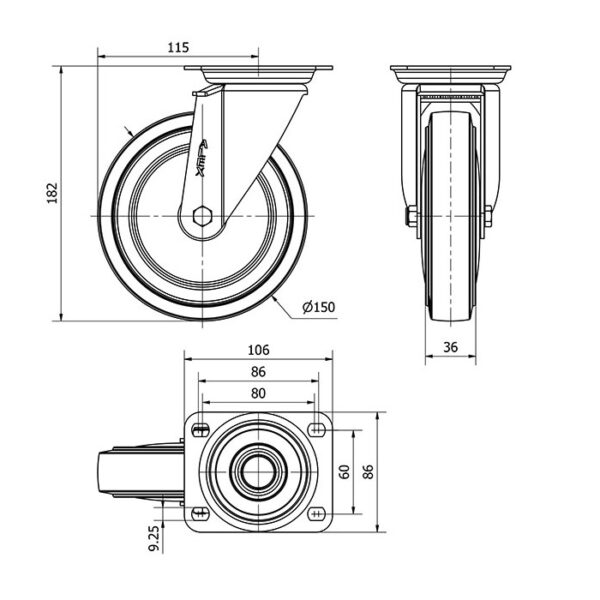 Rueda goma giratoria Alex diametro 150 mm. modelo 2-4260