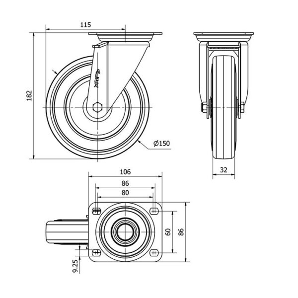 Rueda goma giratoria Alex diametro 150 mm. modelo 2-4347 EAN 8422202243474