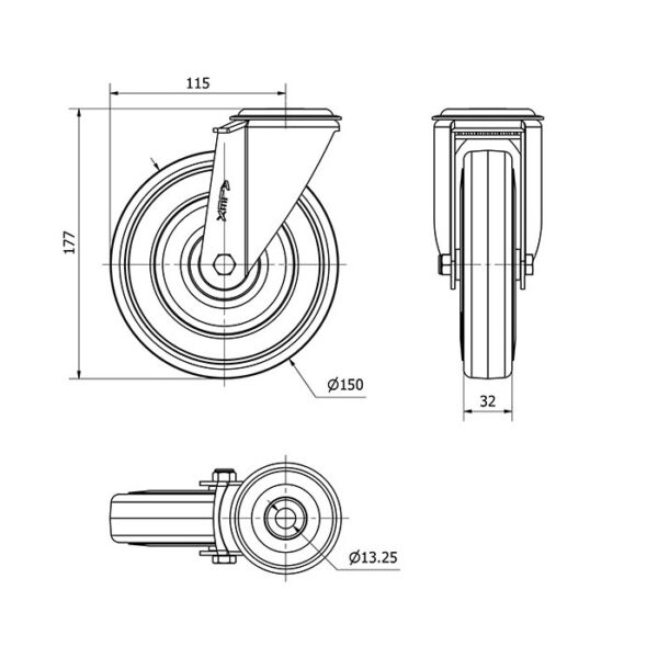 Rueda goma giratoria Alex diametro 150 mm. modelo 2-4355