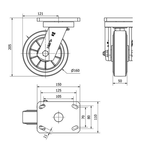 Rueda goma giratoria Alex diametro 160 mm. modelo 2-0449