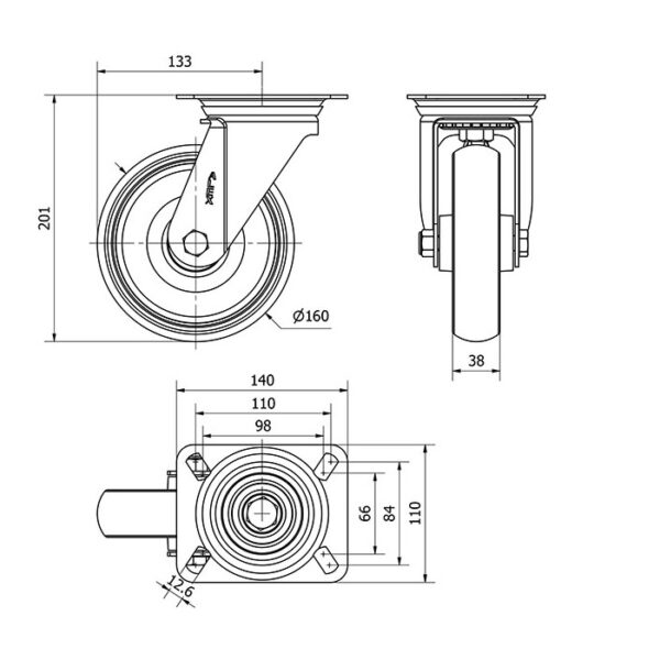 Rueda goma giratoria Alex diametro 160 mm. modelo 2-3268 EAN 8422202232683