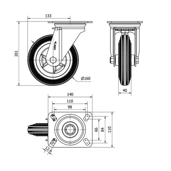 Rueda goma giratoria Alex diametro 160 mm. modelo 2-3399