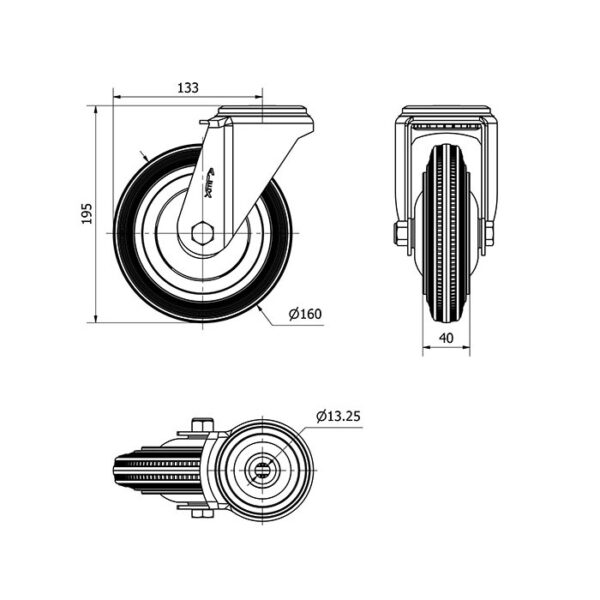 Rueda goma giratoria Alex diametro 160 mm. modelo 2-3558