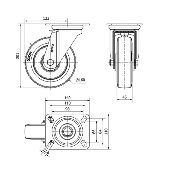 Rueda goma giratoria Alex diametro 160 mm. modelo 2-3771 EAN 8422202237718