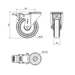 La serie de ruedas Alex ZV-PGR son ruedas de goma elástica gris, indicadas para soportar cargas hasta 400 Kg. Se utilizan en carros de herramientas, carros tubulares, logística interna, útiles de transporte, plataformas elevadoras, talleres, carros de transporte de alimentación, cocinas, cantinas, comedores, restaurantes, supermercados, jaulas de transporte, cajas de audio para sonido y gradas móviles. PGR: No manchan el suelo. Gran absorción de golpes y vibraciones. Ruedas suaves y silenciosas. Elásticas.