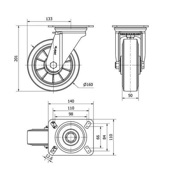 Rueda goma giratoria Alex diametro 160 mm. modelo 2-4360