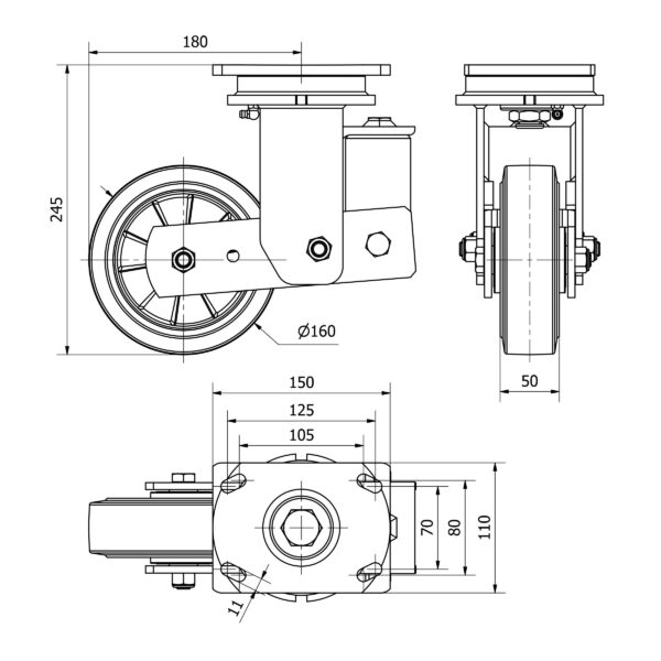 Rueda goma giratoria Alex diametro 160 mm. modelo 2-4412 EAN 8422202244129