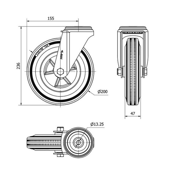 Rueda goma giratoria Alex diametro 200 mm. modelo 2-1027