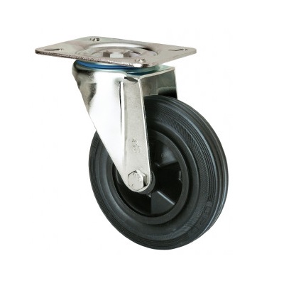 La serie de ruedas Alex ZV-PS son de goma negra natural, indicadas para soportar cargas hasta 215 Kg. Se utilizan en carros de herramientas, carros tubulares, logística interna, gradas móviles, útiles de transporte, plataformas elevadoras, talleres, carros de transporte de alimentación, cocinas, cantinas, comedores, restaurantes, factorías de alimentación, transporte de útiles, compresores, escaleras, barredoras y pulidoras, soldadura, hormigoneras, grúas, maquinas de embalaje, cintas transportadoras, grúas móviles, remolques, maquinaría ligera, ebanisterías, cerrajerías, carpinterías metálicas, granjas agrícolas, contenedores de basura, contenedores, jaulas de transporte. PS: Rueda suave y silenciosa. Máxima protección de los suelos. Absorción de golpes y vibraciones.