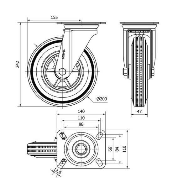 Rueda goma giratoria Alex diametro 200 mm. modelo 2-1073 EAN 8422202210735