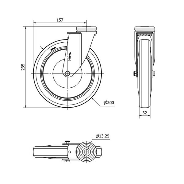 Rueda goma giratoria Alex diametro 200 mm. modelo 2-1567