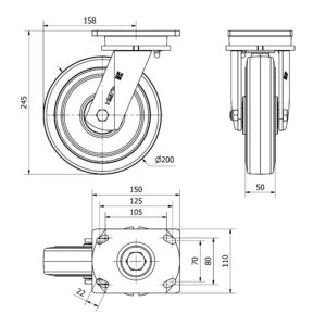 Rueda goma giratoria Alex diametro 200 mm. modelo 2-3642