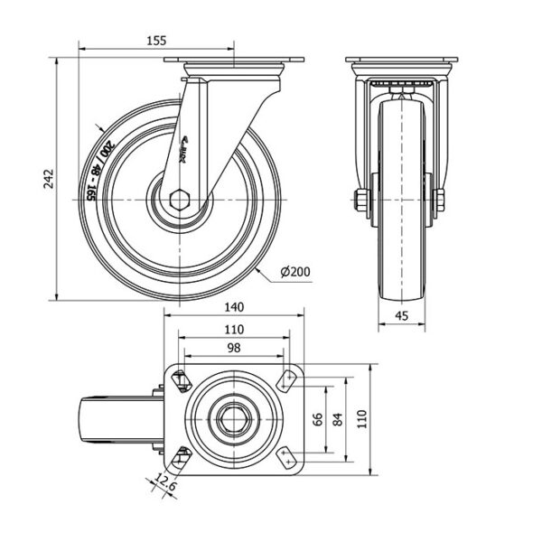Rueda goma giratoria Alex diametro 200 mm. modelo 2-3777 EAN 8422202237770
