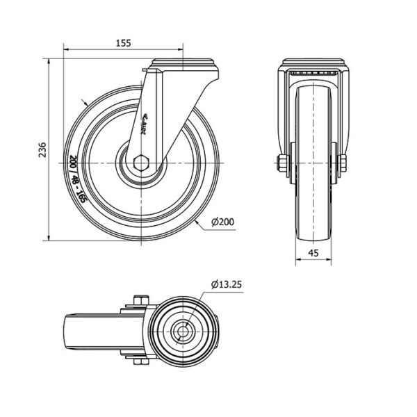 Rueda goma giratoria Alex diametro 200 mm. modelo 2-3780