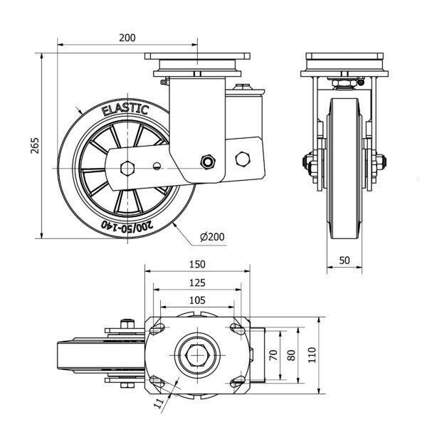 Rueda goma giratoria Alex diametro 200 mm. modelo 2-3961