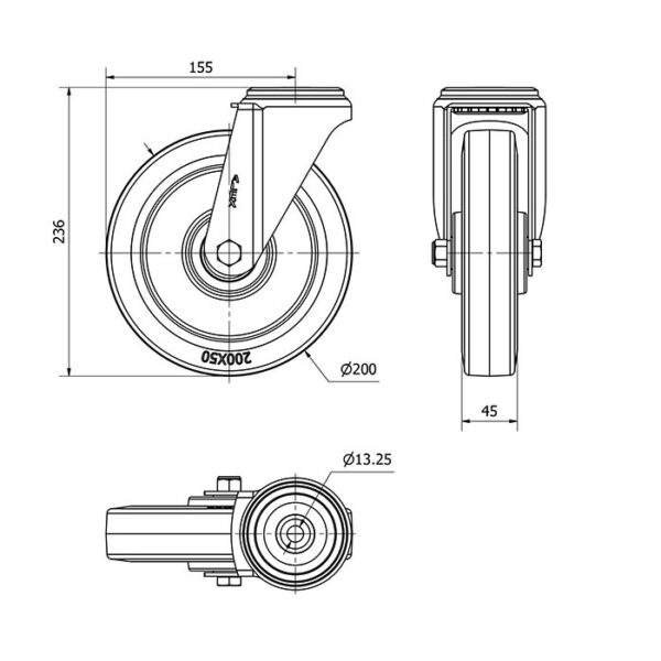 Rueda goma giratoria Alex diametro 200 mm. modelo 2-4472