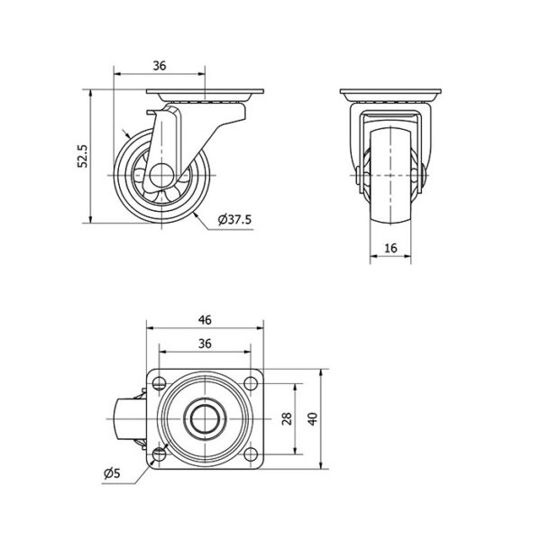 Rueda goma giratoria Alex diametro 40 mm. modelo 1-0779