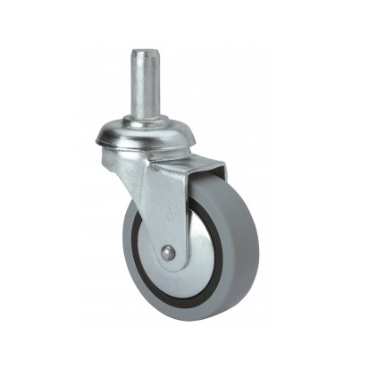 La serie de ruedas Alex B-PGI son de goma gris, indicadas para soportar cargas hasta de 25 kg. Se utilizan en expositores, muebles, estanterías, taburetes, percheros, carros de hostelería, ebanisterías, stands, carros de limpieza, mesas de ordenador, pequeño mobiliario, etc., ya que no rallan ni dejan huella en el suelo y son muy silenciosas.